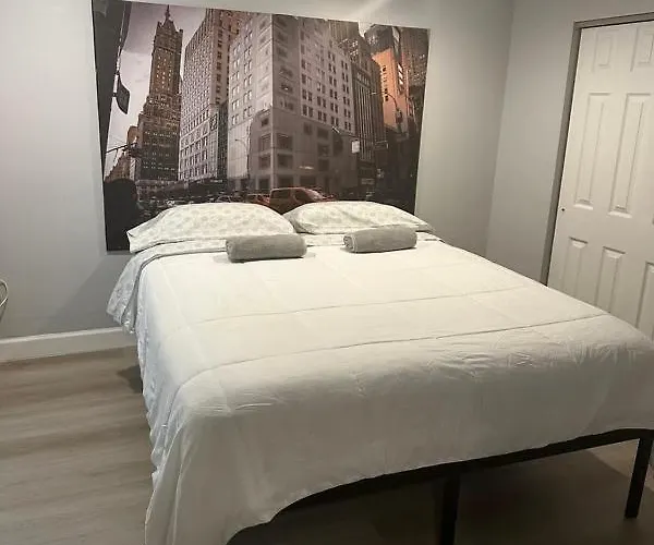 El Peaceful House Near Manhattan ofrece a los huéspedes acceso a una zona de estar equipada con climatizador, y comodidades modernas como internet de alta velocidad y TV de pantalla plana con canales vía satélite. Las habitaciones están equipadas con detectores de humo. Los cuartos de baño disponen de ducha a ras de suelo y un inodoro separado de la ducha, secadores de pelo y toallas.